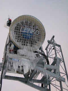 Så vi började fixa med den kanonen och jag for ner till P2 igen för att hämta saker för att kunna avisa kanonen. Då händer det som inte får hända, jag kliver av skotern med en väldigt bitter känsla över att inget går som de ska och stänger av skotern... Då hör jag ut genom garageporten att hela snösystemet stannar! Det blev utav nån anledning strömavbrott på P2! PANIK! Jag ropade på radion att grabbarna skulle börja stänga kanoner fort som attans så att vi inte fryser kanoner och rör! Som tur var gick det bra den här gången men med tanke på att det är kallt ute (-16 grader) så fryser saker väldigt fort.