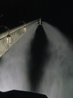 Den fungerar genom att luft och vatten pressas in i piporna genom dom 2 gula slangarna (2 tums slang). Luften splittrar vattnet till Snökristaller som sedan faller till backen och skapar det vita guldet som vi alla vill ha på vintern!
